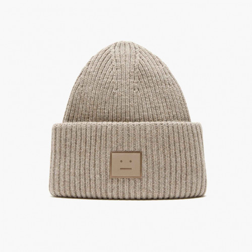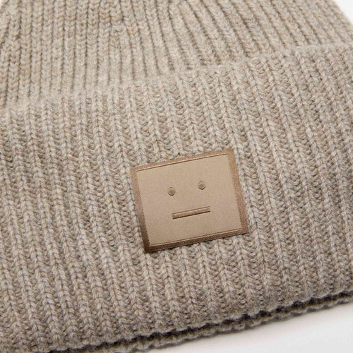 Acne Studios Large Face Logo Beanie - Greige Melange (Yak Wool)