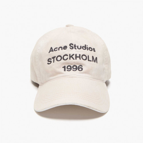 Die Acne Studios Logo Cap ist eine klassische Baseballkappe mit einem gestickten Acne Studios 1996-Logo auf der vorderen Mitte. Sie ist aus gepeachtem Baumwollköper mit kontrastierenden Steppnähten gefertigt und mit einem verstellbaren D-Ring-Verschluss versehen.