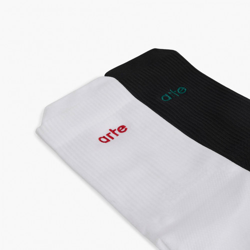 Die bequemen Socken sind aus weichem, dehnbarem Material gefertigt. Auf beiden Socken sind das 3-Balken Logo und das Arte Antwerp Logo aufgestickt. Und mit zwei Paaren in jeder Packung musst du nicht auf den Waschtag warten, um diesem internationalen Fußballturnier Tribut zu zollen."