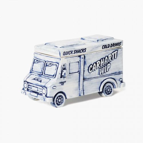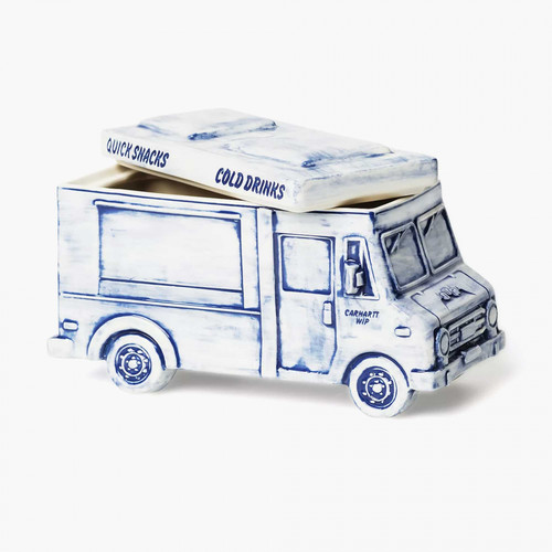 Der Cold Drinks Dispenser von Carhartt WIP interpretiert funktionales Design mit verspieltem Charakter. In Form eines Trucks gestaltet, verbindet das Objekt dekorative Ästhetik mit praktischer Nutzung. Gefertigt aus glänzend glasierter Keramik (Porzellan), eignet sich der Dispenser für den Kontakt mit Lebensmitteln und setzt mit geprägten Grafiken markante Akzente.