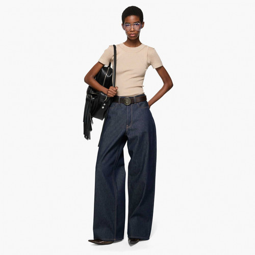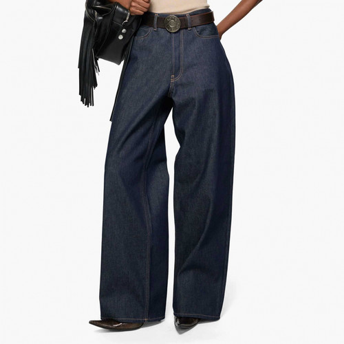 The Acne Studios Raw denim jeans crafted from indigo denim twill, finished with a leather logo patch at the back waist. 1981 jeans are cut to a loose unisex silhouette with a low to mid waist, wide baggy leg, and long length.