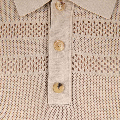 The Dries Van Noten Mesh Stitch Polo is a regular fitted short sleeve polo shirt with mesh stitch in viscose poly.