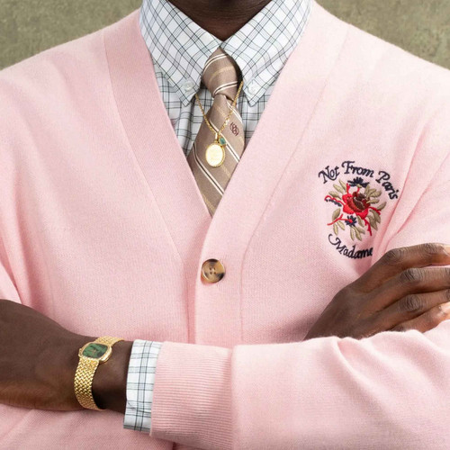 Drôle De Monsieur Cardigan Slogan Rose - Light Pink