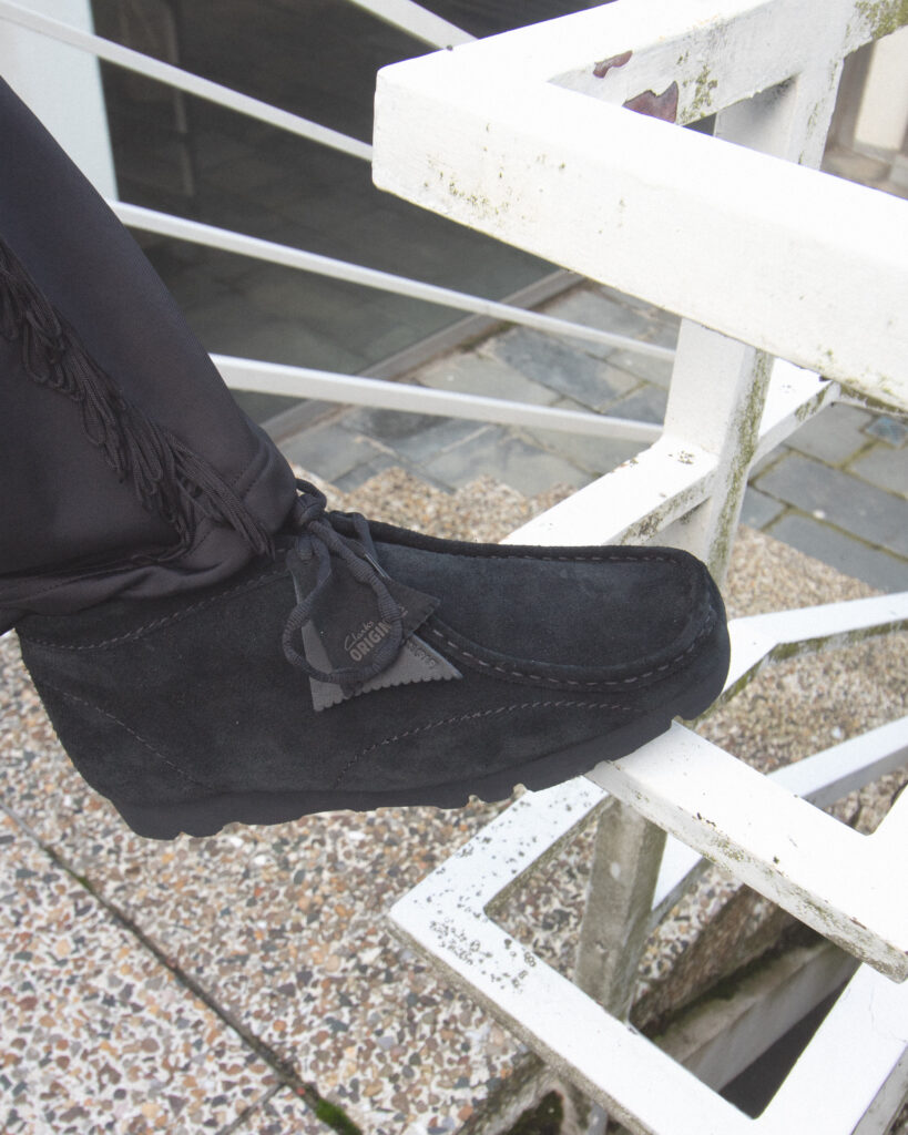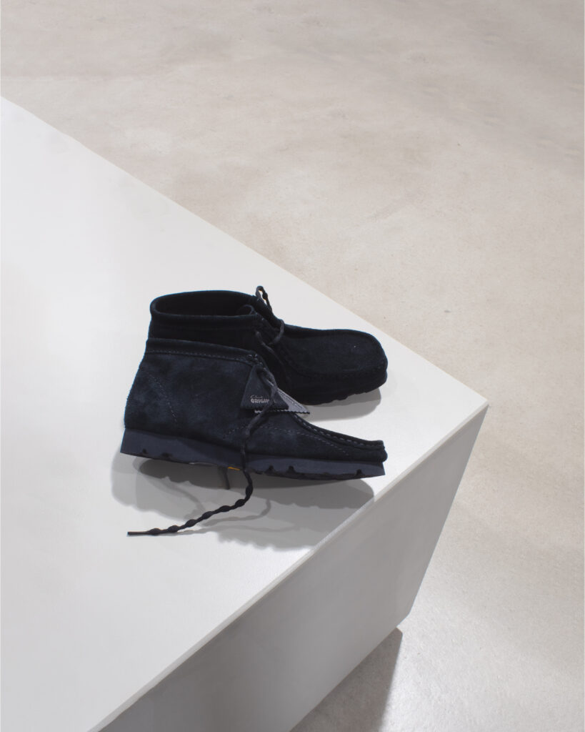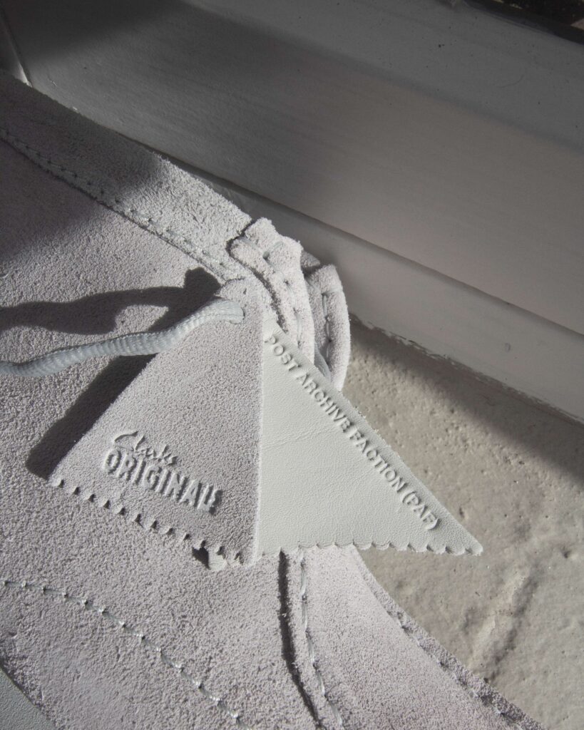 For their collaboration with Clarks, PAF approached the Wallabee not as a fashion item but as a framework: Visible stitching traces the outline of the shoe, creating a sense of tension and precision. The signature crepe sole gives way to a Vibram platform, pushing the silhouette closer to utilitarian terrain. The proportions shift just enough to feel contemporary, but never forced. It’s a design that speaks the same language as the original — only now, it whispers in a different dialect.